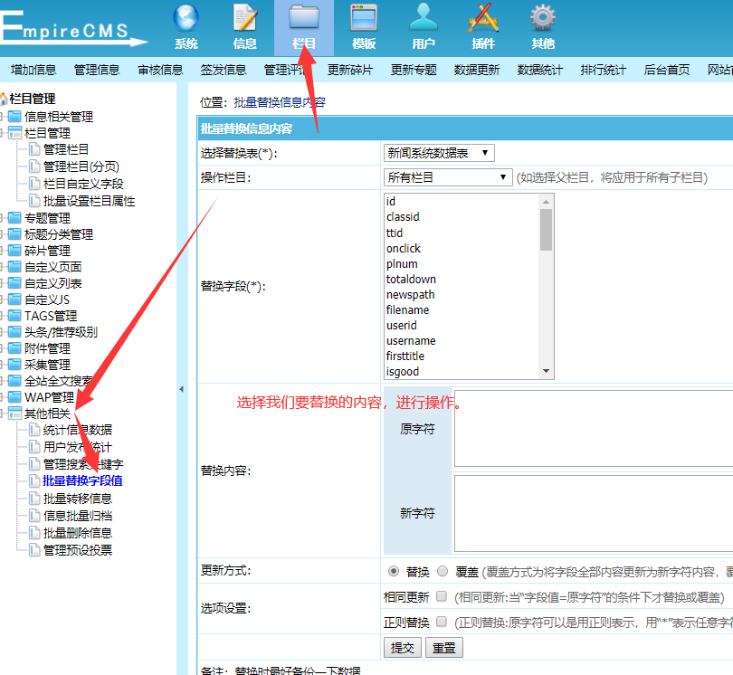 帝国CMS如何批量替换字段值,帝国CMS批量替换字段值?