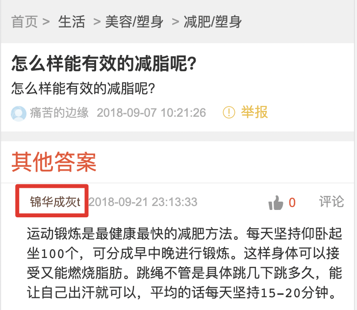 △在回答“健身减肥”领域的问题时,该生产者缺乏相关领域的认证,缺乏权威性。