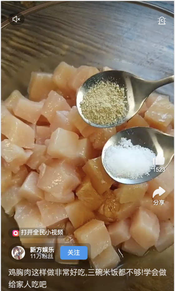 △搜索“鸡胸肉”时,上图为用户主需内容。