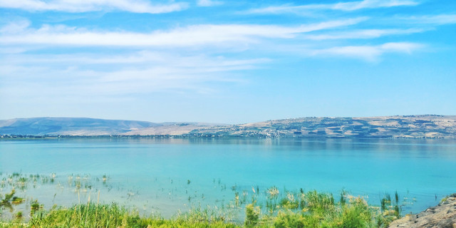 以色列东北部多是绵延的山地,虽不甚巍峨,却林木葱茏。山脚下一泓湛蓝的湖水,泛着粼粼波光映入人们的眼帘,那便是加利利湖。