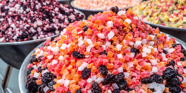和国内的菜市场很像,卡梅尔露天市场集中在一条小巷中,道路两旁遍布着个体小商贩们。琳琅满目的商品调动着每一个深入其中的眼睛,各种新奇的水果、地域特色的阿拉伯香料和糕点、色彩斑斓的糖果、味道迥异的奶酪起司、甚至还有蔬菜、衣服、箱包和鞋帽……一切景象都在告诉你这里的繁荣。