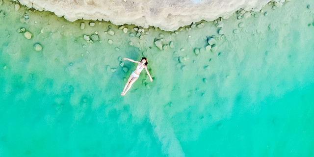 在阳光明媚的下午,走进死海湖岸,慢慢走进湖里,双脚缓缓抬起,整个人如同被托举般,漂浮在这片色彩斑斓的水面之上,海风轻轻吹过,带着你在海水中缓缓移动,这时候,优雅地拿上一张以色列当地的报纸仔细阅读,大概是来死海的必修课了。