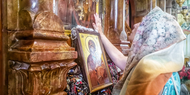 教堂一如既往地神圣庄严,这里光线幽暗,全是虔诚的教徒和闪烁的烛光,仅仅从圆形穹顶之上,洒下微弱的光线,犹如耶稣的凝视。耶稣的圣墓便是在这里,无数虔诚的信徒从世界各地汹涌而至,排着长队等待着触摸耶稣留下来的细微痕迹,仿佛通过这种方式,就能够离心中的圣人近一些,更近一些。