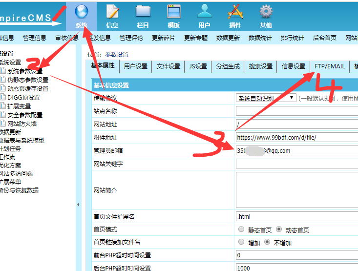 第一步:系统设置-基本属性-管理员邮箱-填上你的接收邮箱。